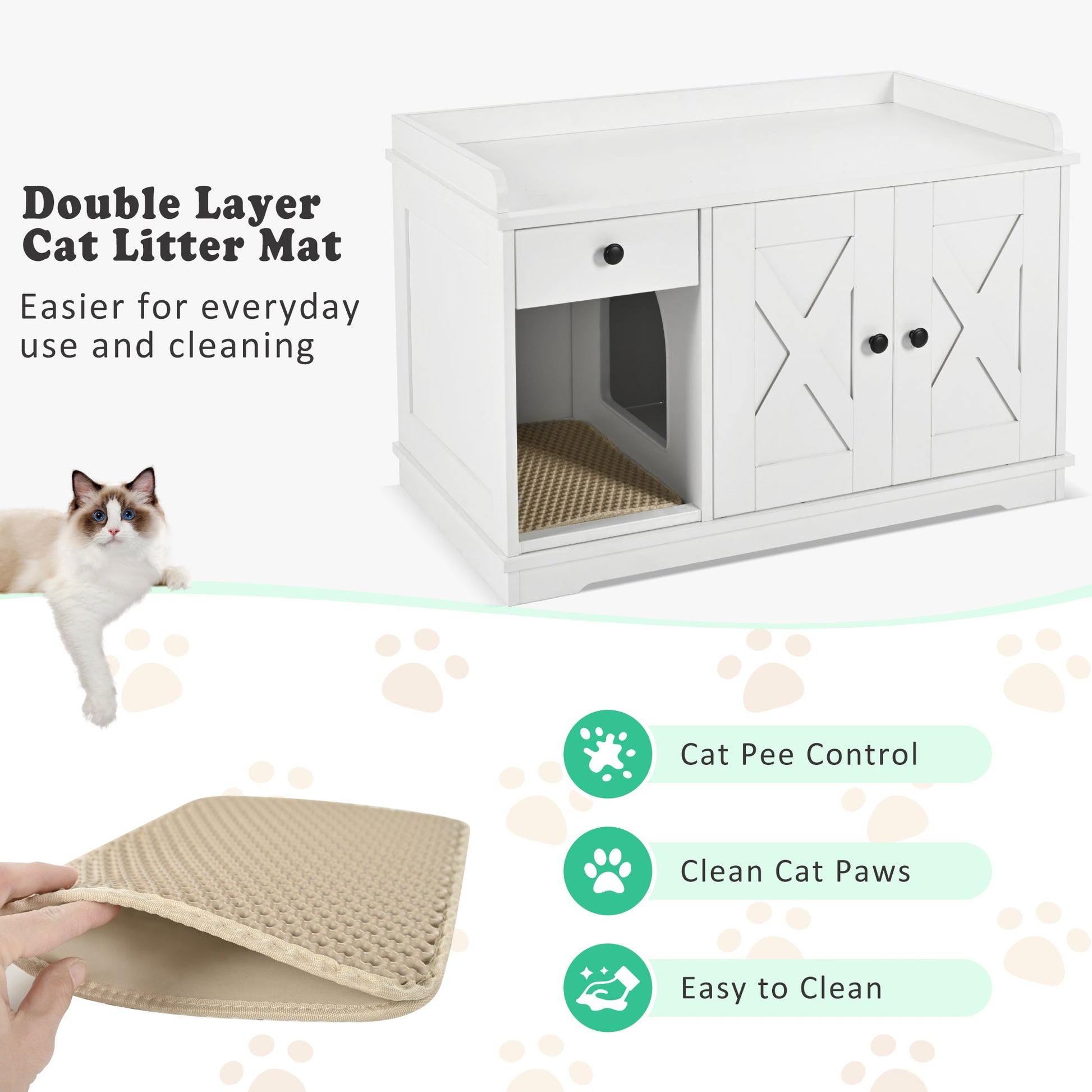 - All-in-One Cat Furniture: Combines a hidden litter box enclosure, storage drawer, side table, and built-in litter mat in one stylish furniture piece. Provides private space for your cat while serving as a cozy resting spot and pet supply organizer. Perfect for maintaining a clean, organized, and odor-free living space.